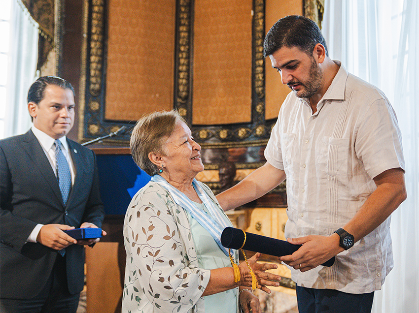 Al final de la sesión, el Alcalde entregó la presea cívica al mérito cultural a María Antonieta Palacios, por su valioso aporte a la ciudad. Este acuerdo se otorgó en el marco de la conmemoración de los 489 años de fundación de la urbe.