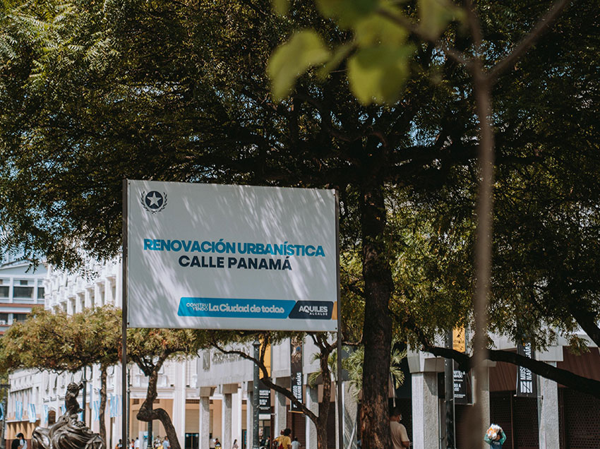 La renovación urbana en la calle Panamá/Pichincha, en el tramo comprendido entre Aguirre y Roca, contempla una inversión de USD 1,1 millones y busca extender hacia estas cuadras el concepto urbano aplicado en el tramo norte, para fortalecer la actividad comercial, turística y cultural del centro.