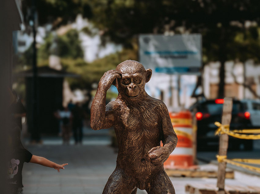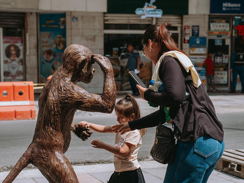 Locales, turistas nacionales y extranjeros hacen una pausa durante su recorrido para tomarse una foto con la figura, que representa parte de la fauna y, al mismo tiempo, conecta con una expresión muy ligada a la identidad guayaquileña, ya que a los habitantes de esta ciudad suele llamárselos “monos” por su carácter alegre y extrovertido.
